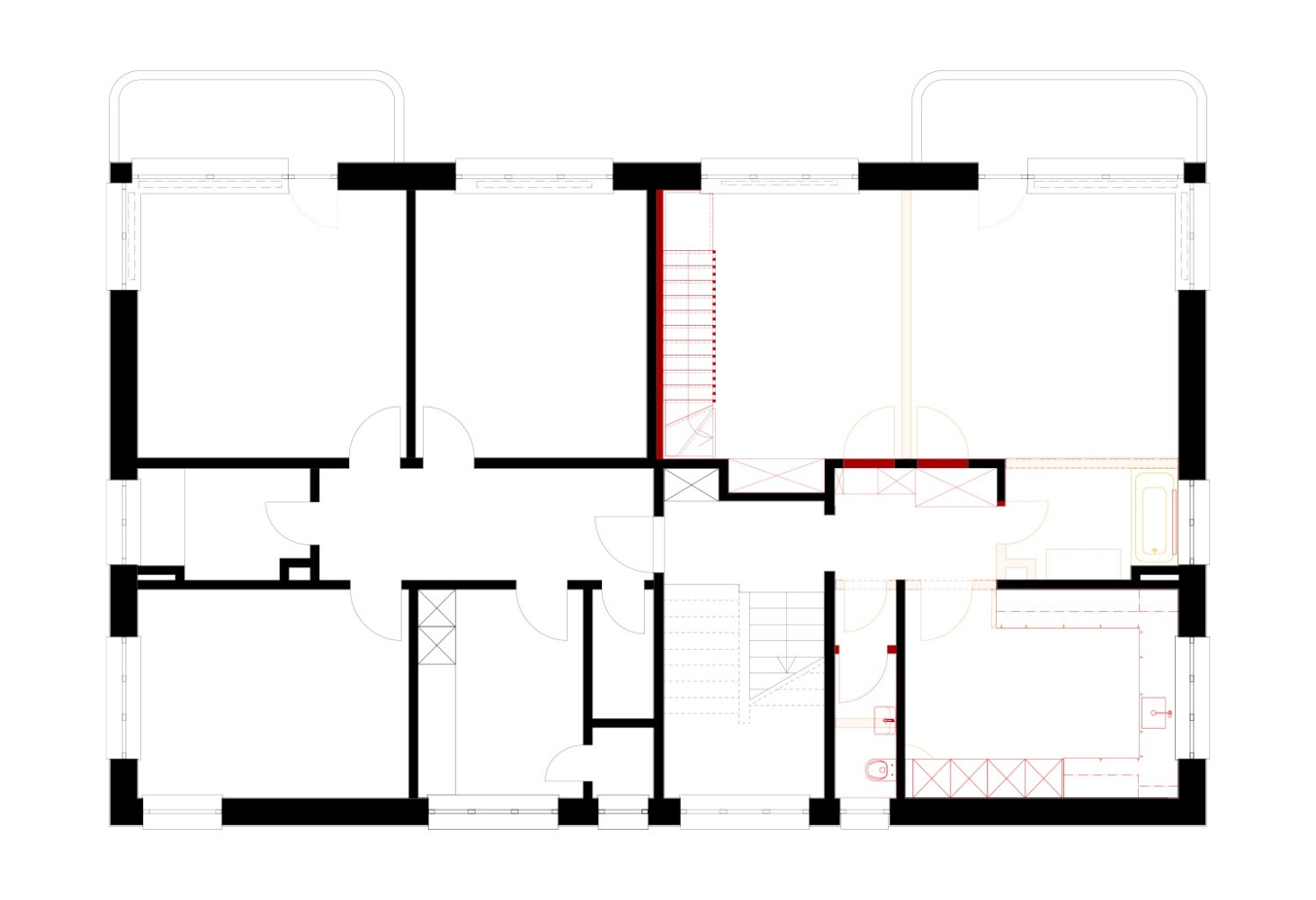 In einem Wohnhaus aus den 30iger-Jahren in Zürich-Wollishofen werden zwei 3 Zimmer-Wohnungen zu einer Maisonette-Wohnung zusammengefasst.