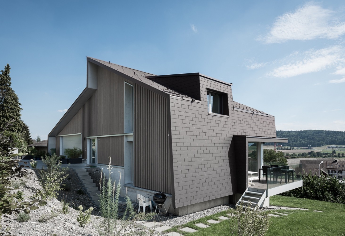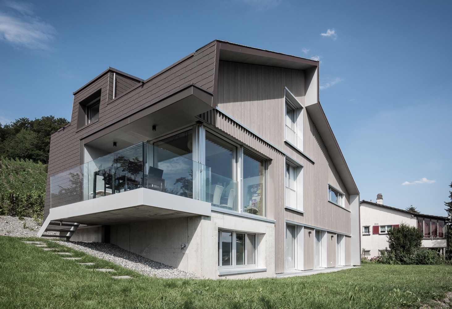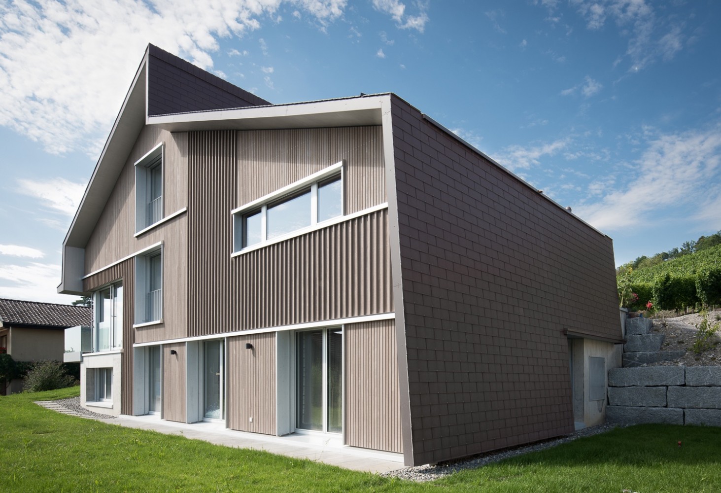 Das Einfamilienhaus in Holzbauweise liegt am Fuss eines Weinberges in der Gemeinde Otelfingen.